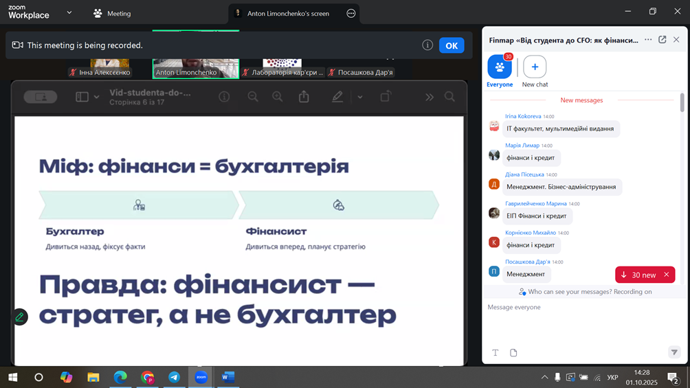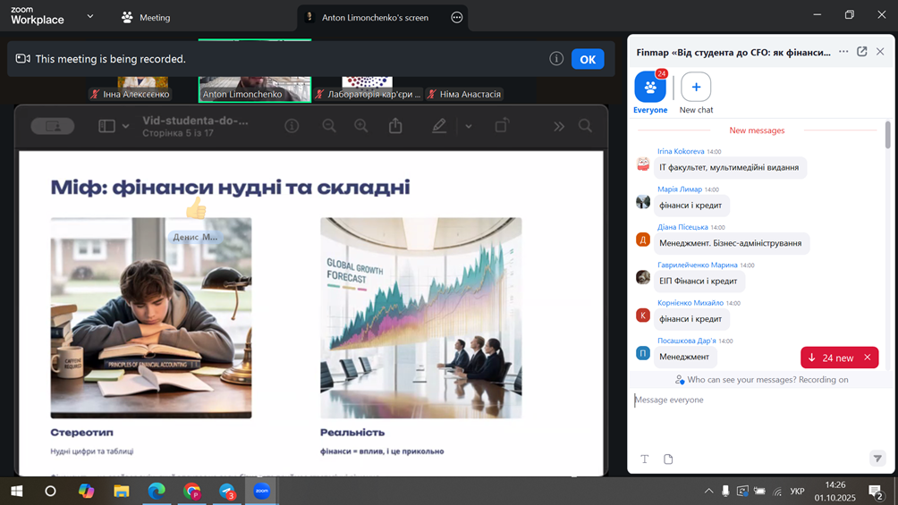 Лекція “Від студента до CFO” від Finmap 1.10.2025 01.10.2025 відбулася гостьова лекція в рамках ONLINE CAREER DAYS у ХНЕУ ім. С. Кузнеця на тему “Від студента до CFO” Спікер – Антон Лимонченко (Finmap) Дякуємо усім, хто залучився! Далі – більше!
